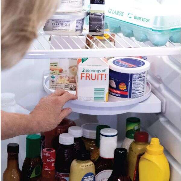 Organize everything with the rotating shelf that installs in seconds where you need extra space! 🙌